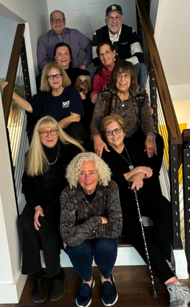 Suzi Schott organized a mini reunion at her house today. Here we are, from the top: Carl Bronfman, Alan Ganek, Enid Diamond Weisholtz, Barbara Melnikoff, Margie Mellman, Maxine Gabbe Breland, Nancy Ori, Josie Dreyer Ganek, and Suzi Lasser Schott.